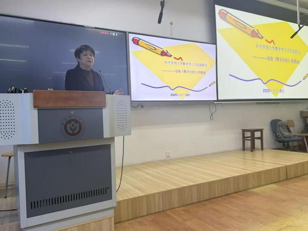 围绕《数学分析》学习中的三大核心挑战,王希云院长展开深入浅出的讲解。针对抽象难懂的ε-δ语言,她跳出纯理论说教,通过“无限趋近”的严格定义与生活场景类比,将晦涩的逻辑精髓转化为可感可知的理解路径;她强调 “教材要先读厚再读薄”,传授“先搭建章节知识框架,再深挖定义、定理、推论的细节关联”的科学阅读方法,分享“课前预习圈画疑问、课中专注听思记思路、课后及时复盘做习题”的闭环学习法,还结合自身教学积累,推荐了《吉米多维奇数学分析习题集》等优质学习资源,为新生搭建起系统的学习体系。